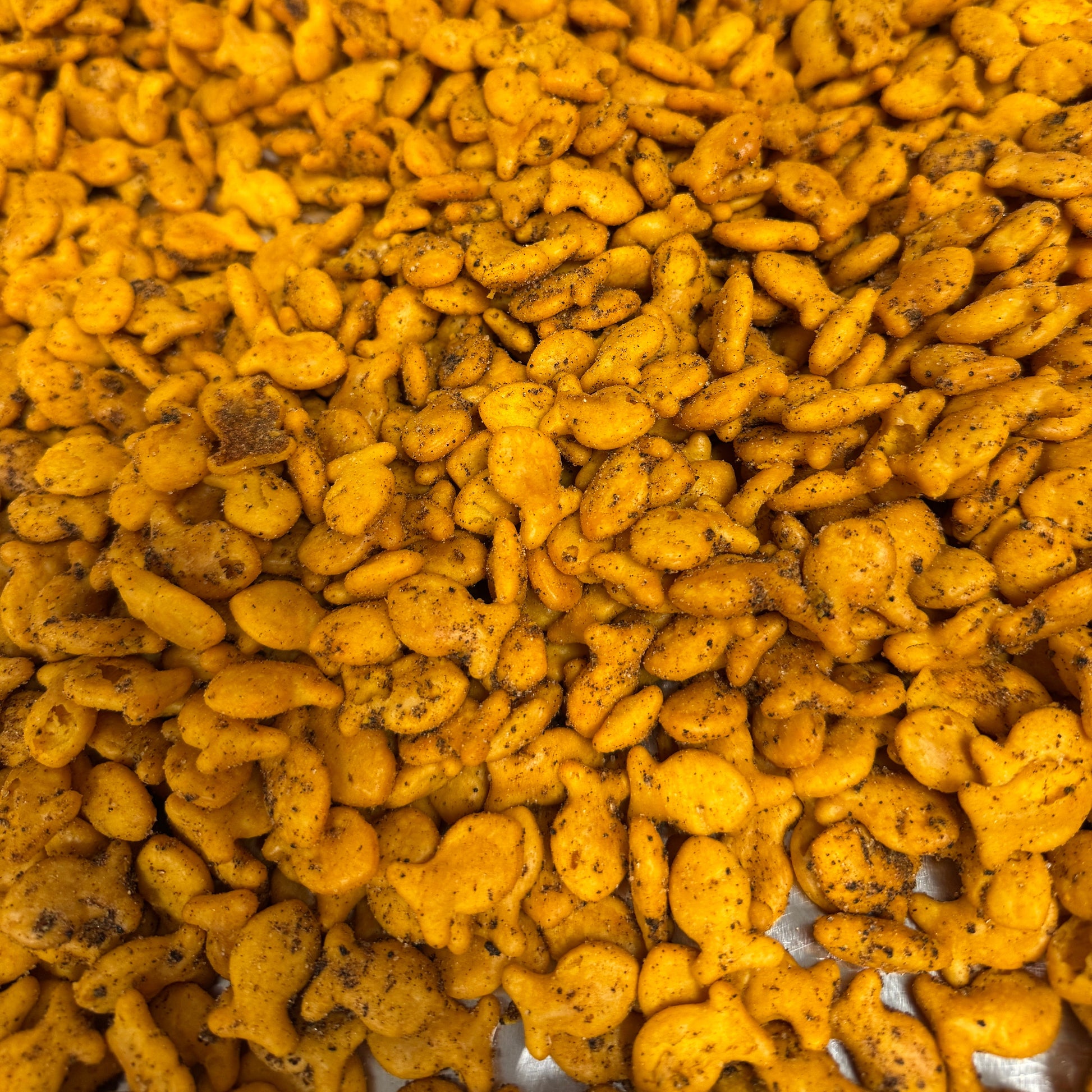 Goldfish seasoned with sriracha seasoning.