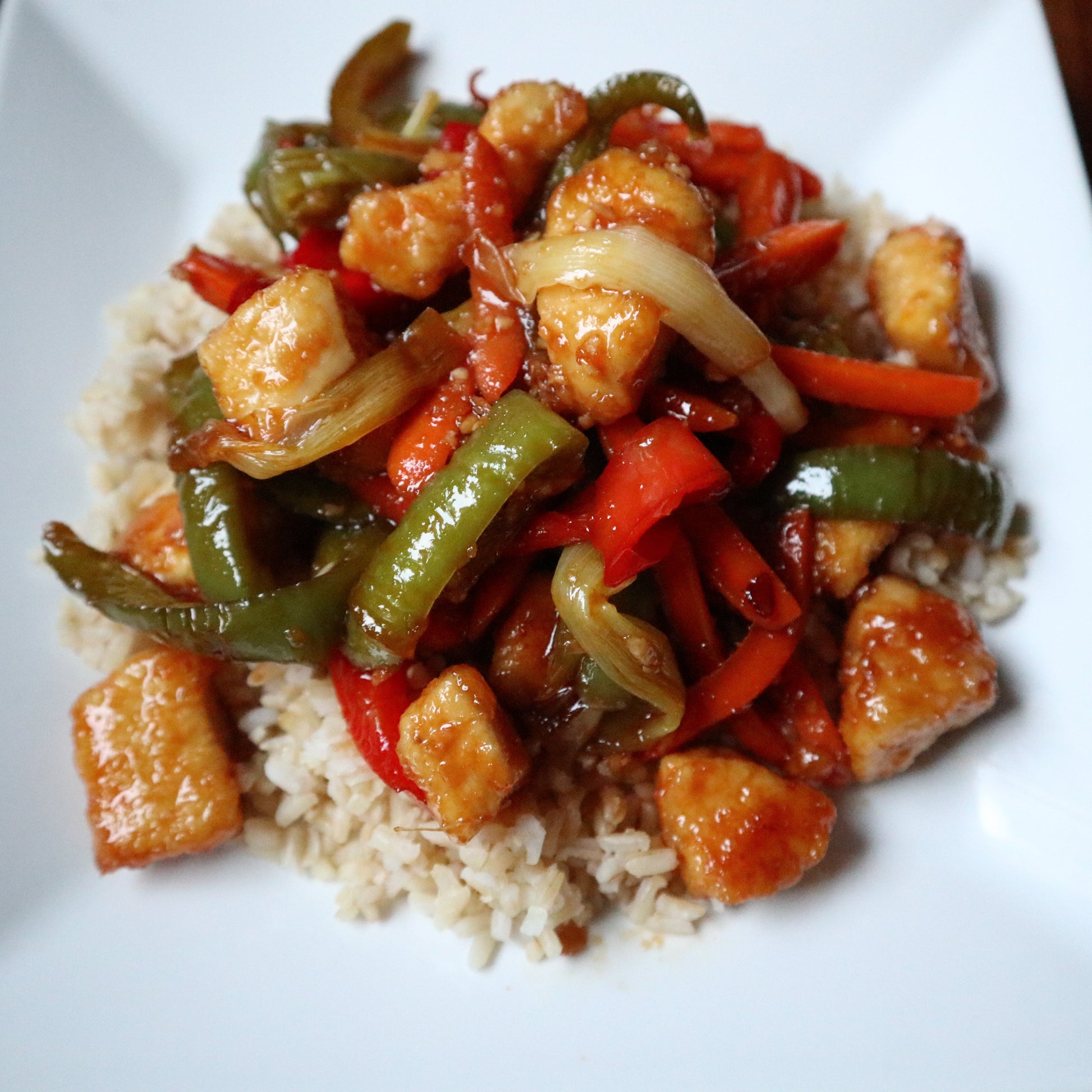 A little heat with a little sweet. Chicken is cooked with a sweet and spicy sauce then served with rice and vegetables. (GF) (Stovetop)